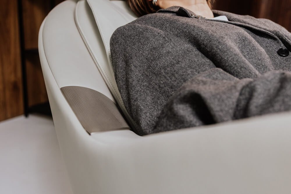 - Pozycja „zerowej grawitacji” oznacza ustawienie fotela w pozycję, w której ciężar ciała jest równomiernie rozłożony, co zmniejsza odczuwalne obciążenie i zapewnia większy komfort.